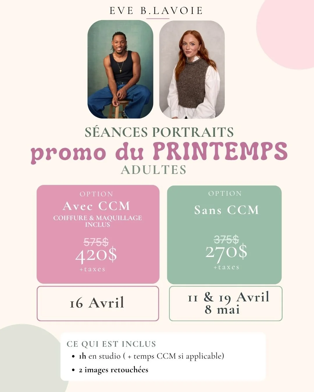-maquilleur/coiffeur reste pendant la séance pour les ajustementsCCM express ( 1 look ) = 150$ à 175 +tx **